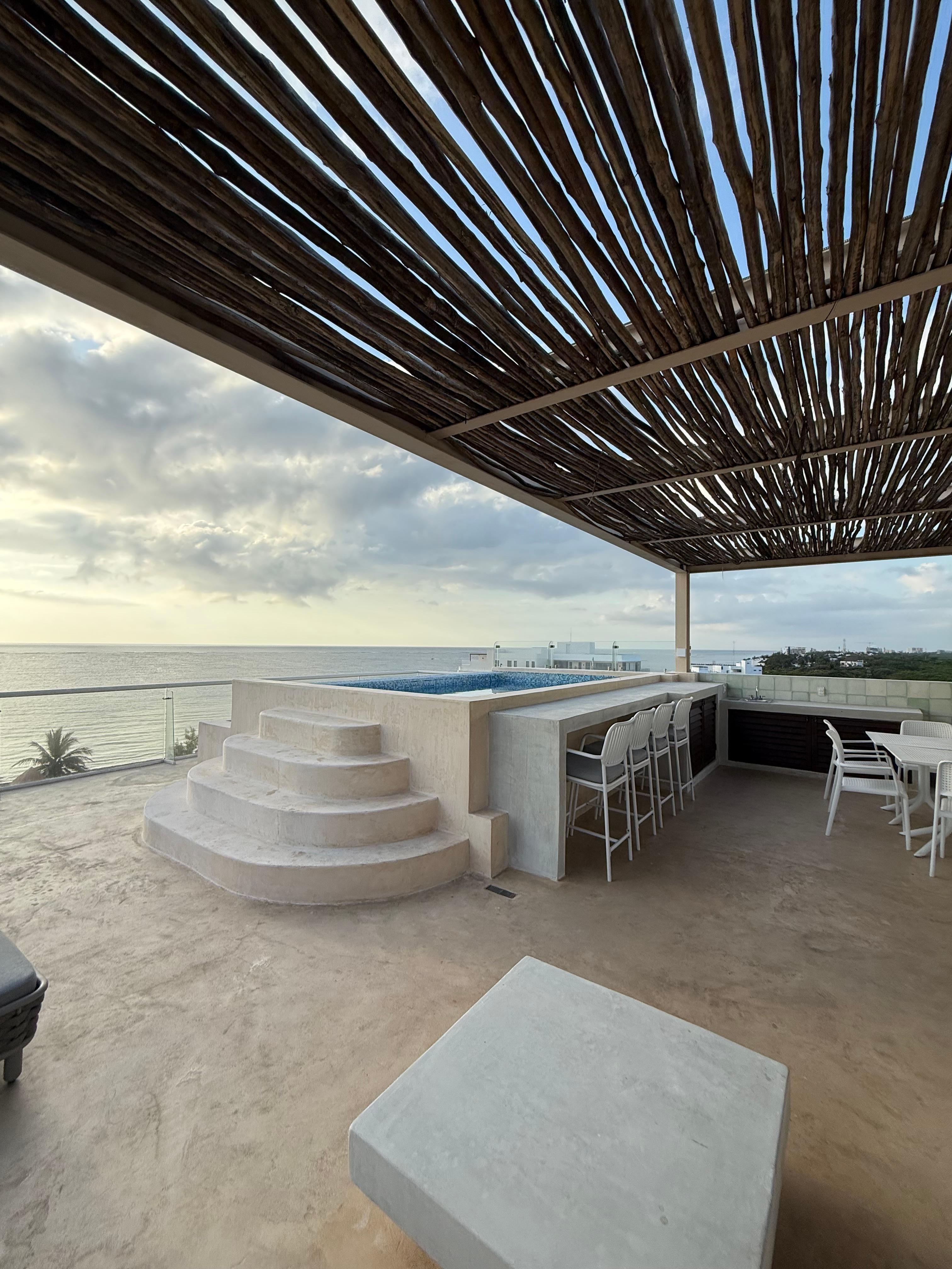 Puerto Morelos Plajı yakınında, plaja sıfır ve açık havuz olan apart daire.